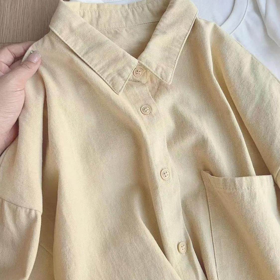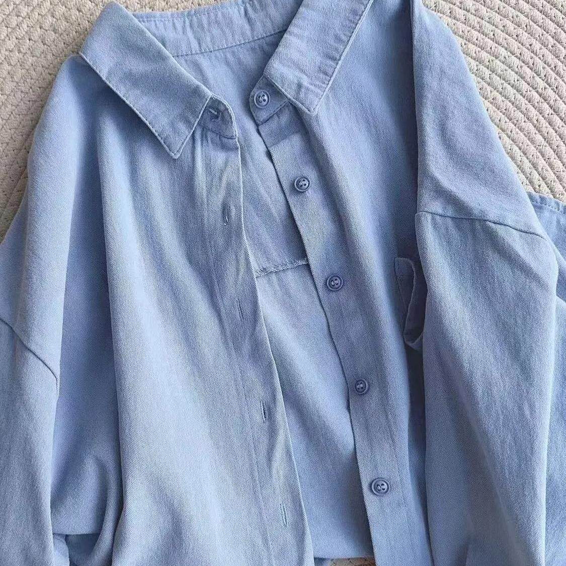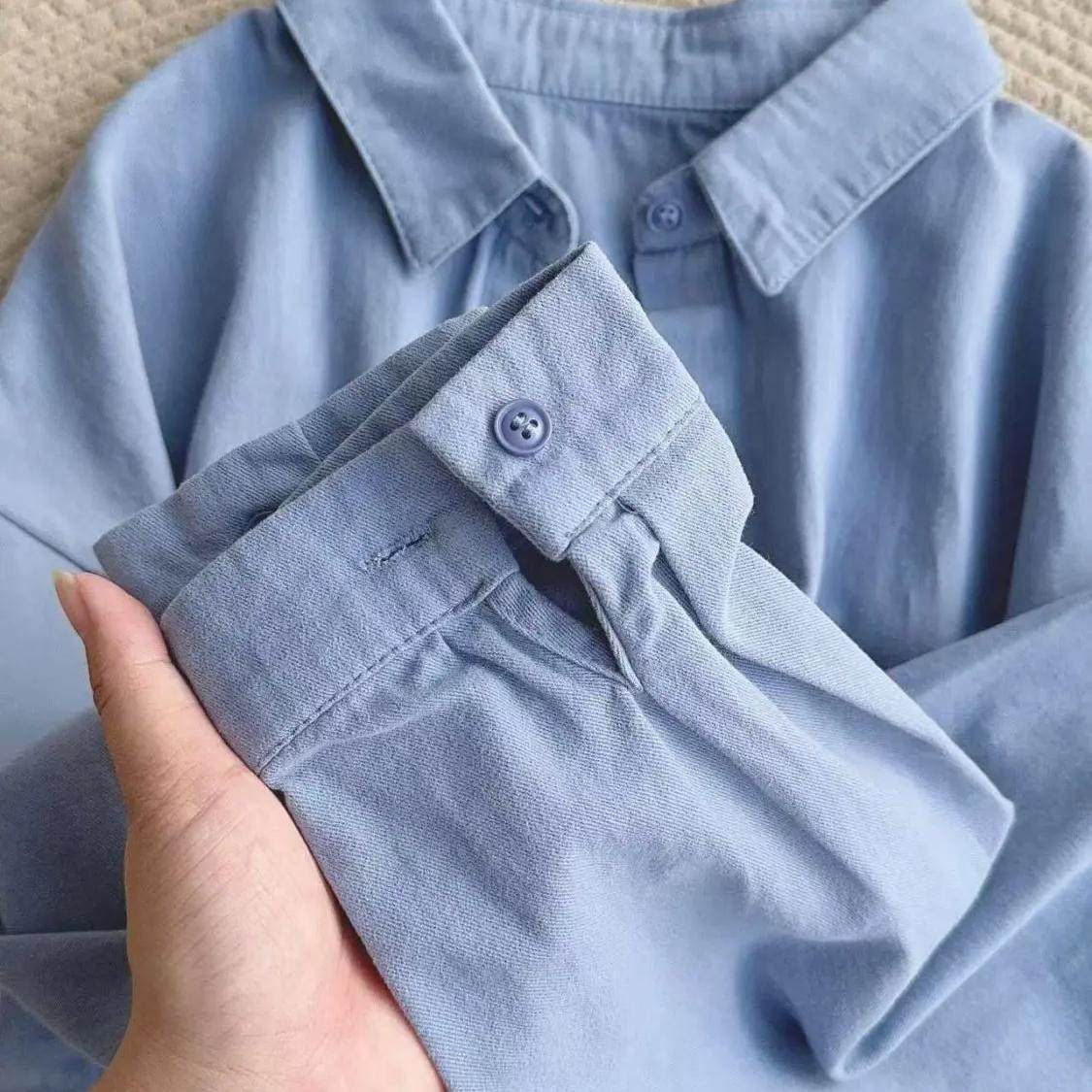 春秋款 单穿内搭叠穿宽松百搭衬衣外搭潮 超显白氛围感蓝色纯棉衬衫
