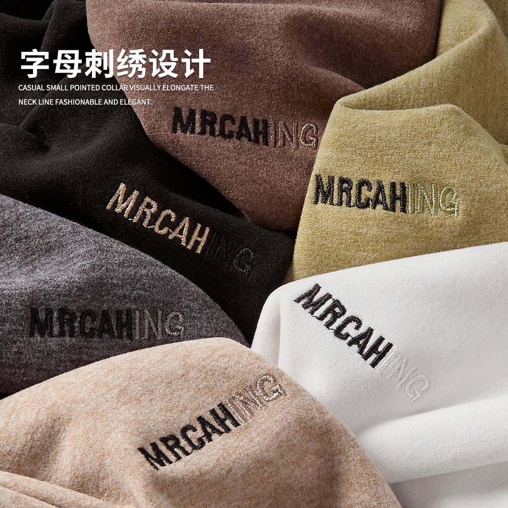 字母刺绣 长袖 保暖厚款 2025秋冬男士 T恤半高领 打底衫 羊毛蚕丝绒