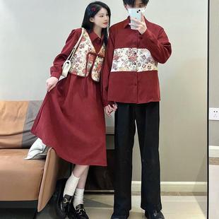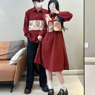 国风连衣裙两件套一裙一衣新年装 情侣装 秋冬复古红色灯芯绒新中式