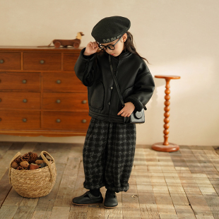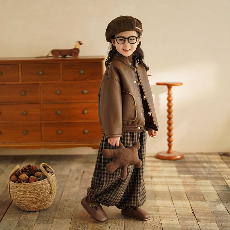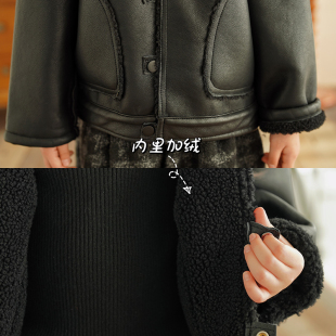 砚台家童装 加厚皮毛一体外套 女童加绒皮衣机车服儿童保暖女宝冬装