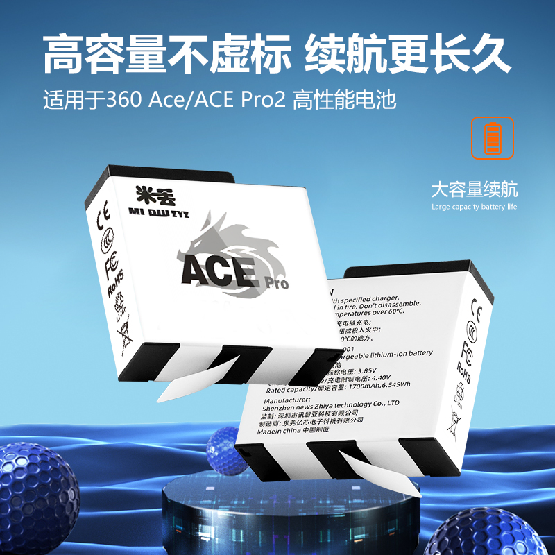 米丢适配影石Insta360acepro2运动相机冷极电池充电器三充快充充电仓360acepro大容量电池acepeo必买配件