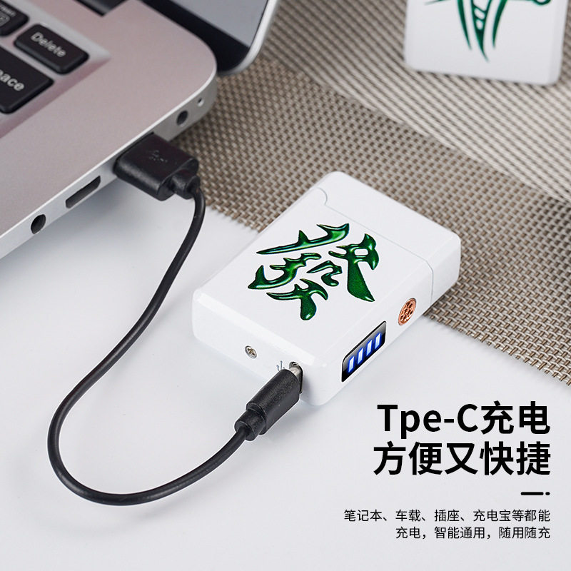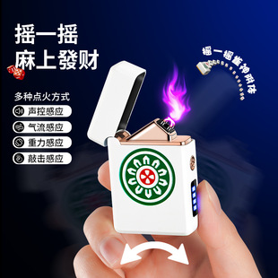 网红透明壳双电弧脉冲防风打火机带电量显示迷你便携充电点礼品