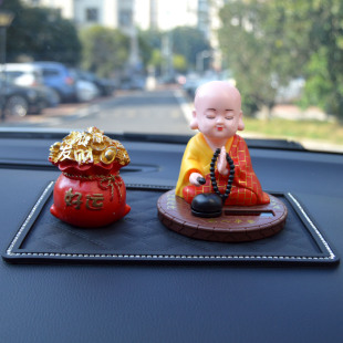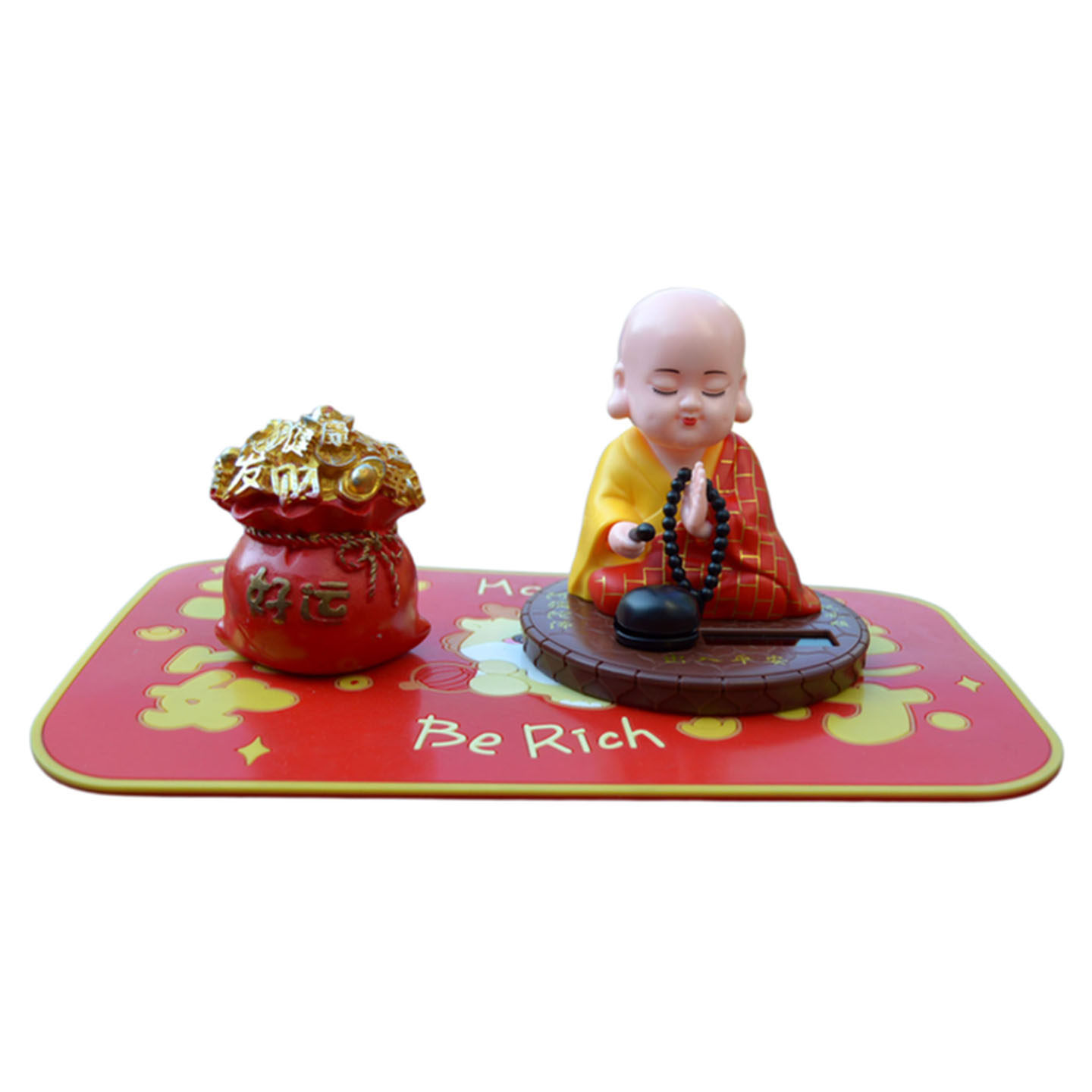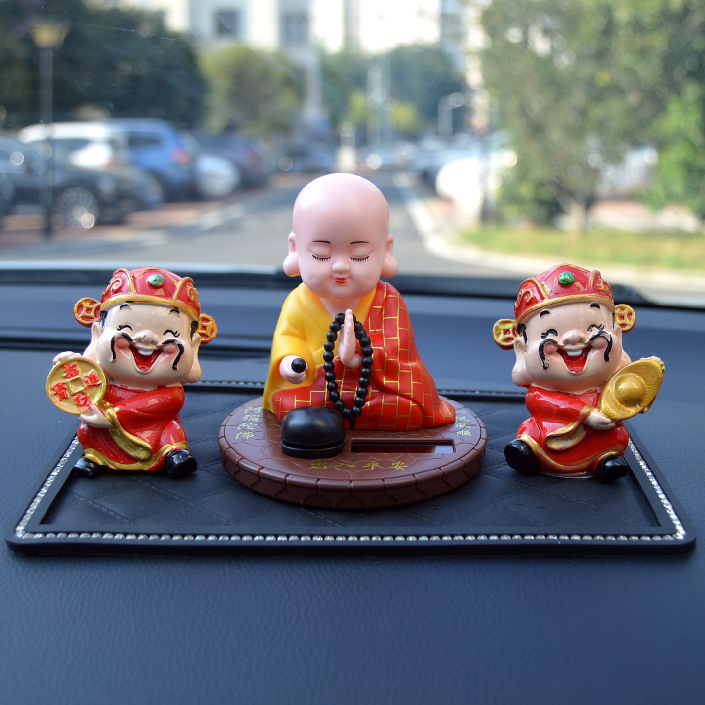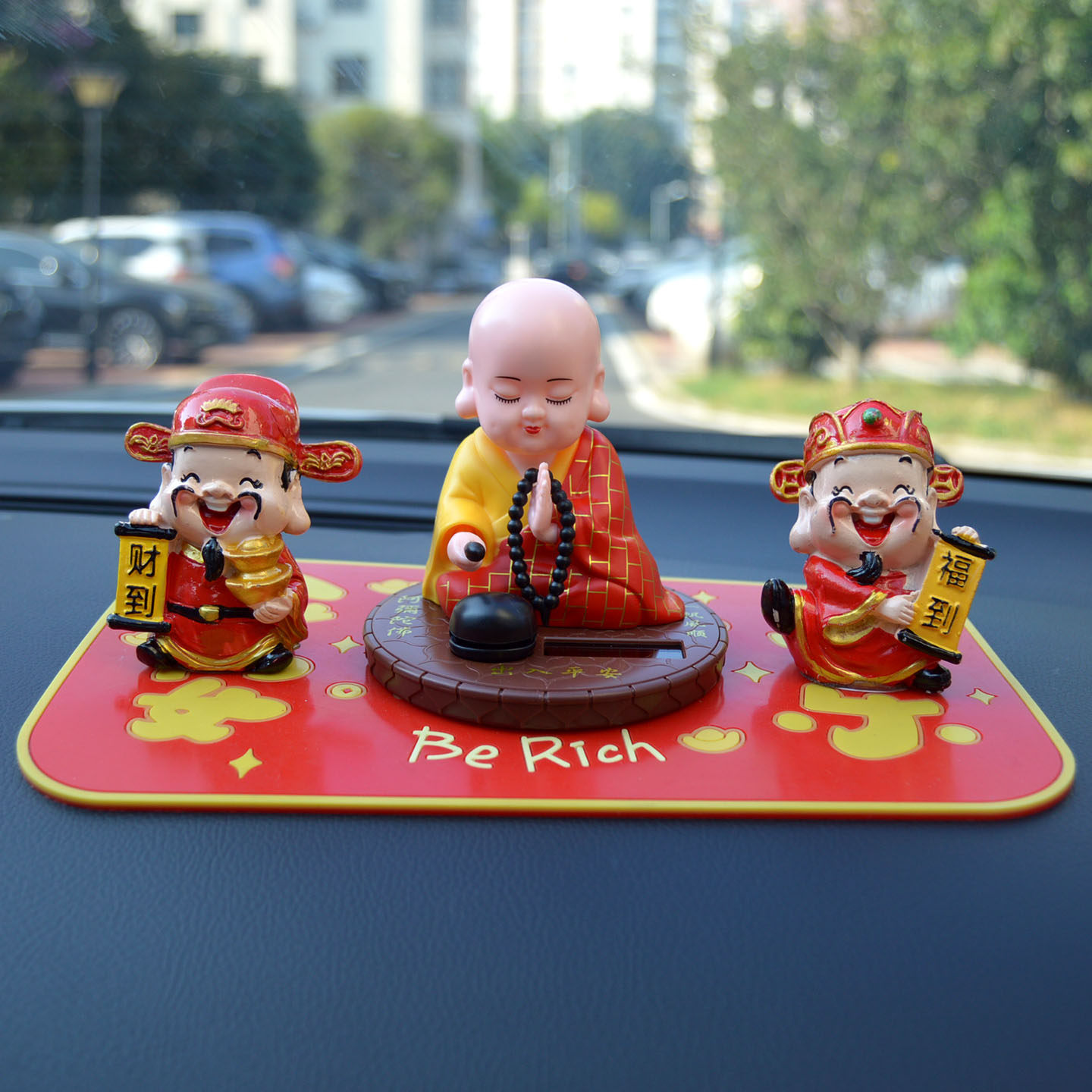 太阳能自动点头敲木鱼小和尚汽车摆件车载中控台上装 饰品车内用品