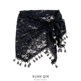 国风流苏半身裙女士三角裙帘腰带巾叠穿短裙时尚 春夏纱巾 屁帘新款