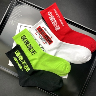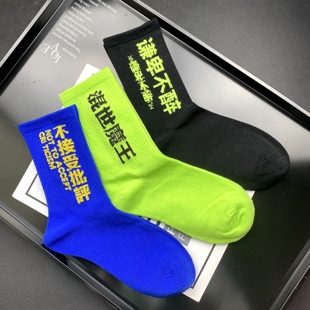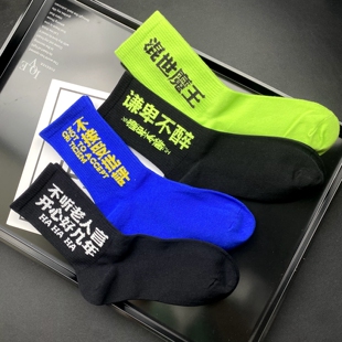 津野潮袜ins男女情侣中筒袜韩版 运动潮袜 街头嘻哈文字蓝白黑个性