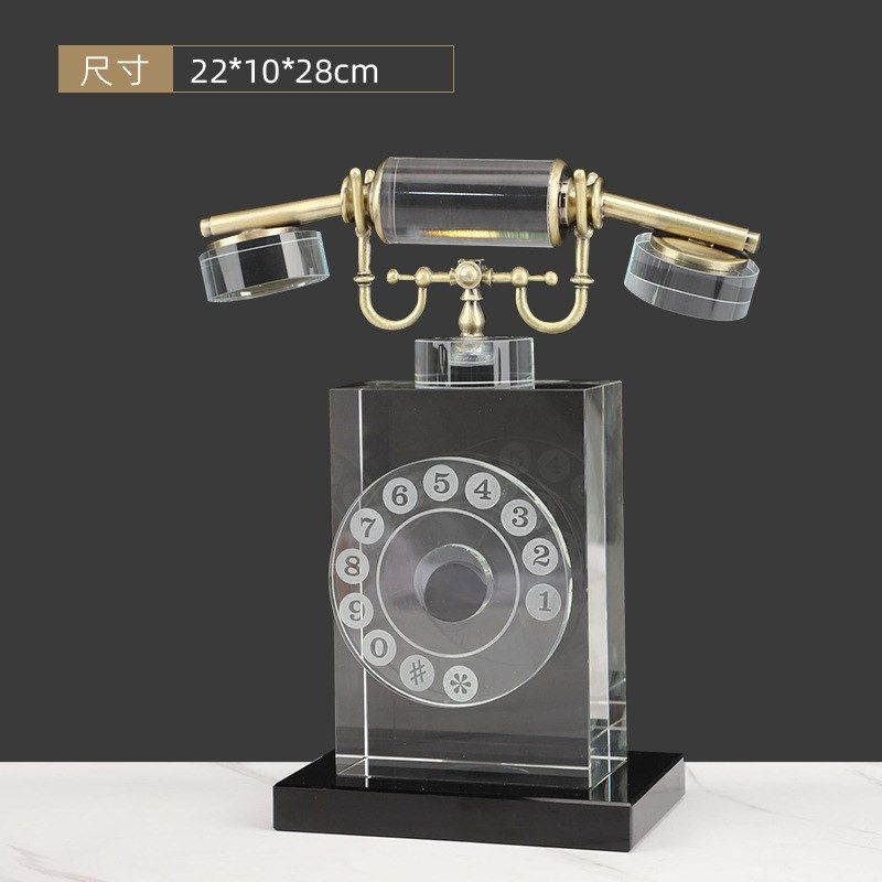 简约现代创意水晶金属电话机摆件展厅样板间客厅桌面家居软装 饰品