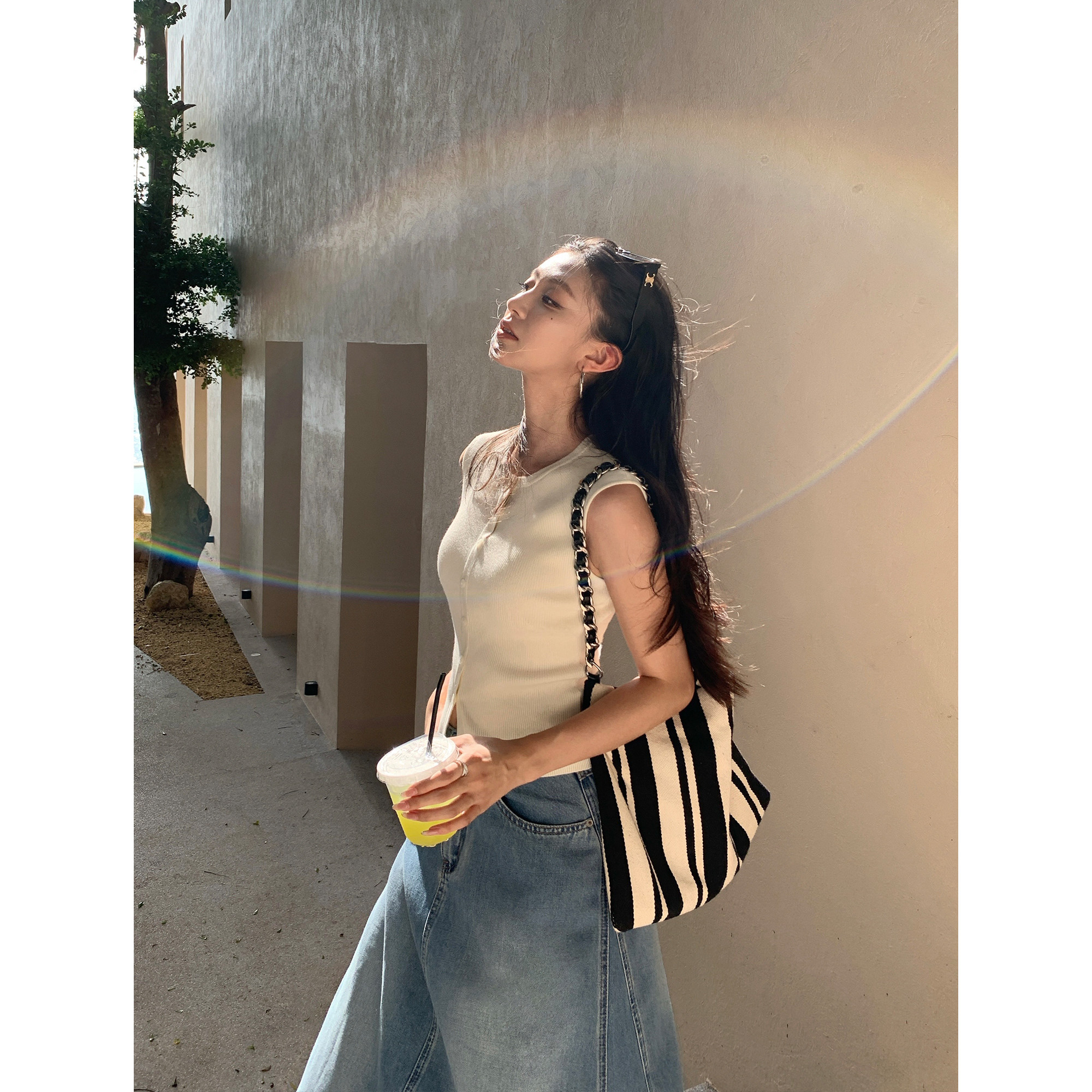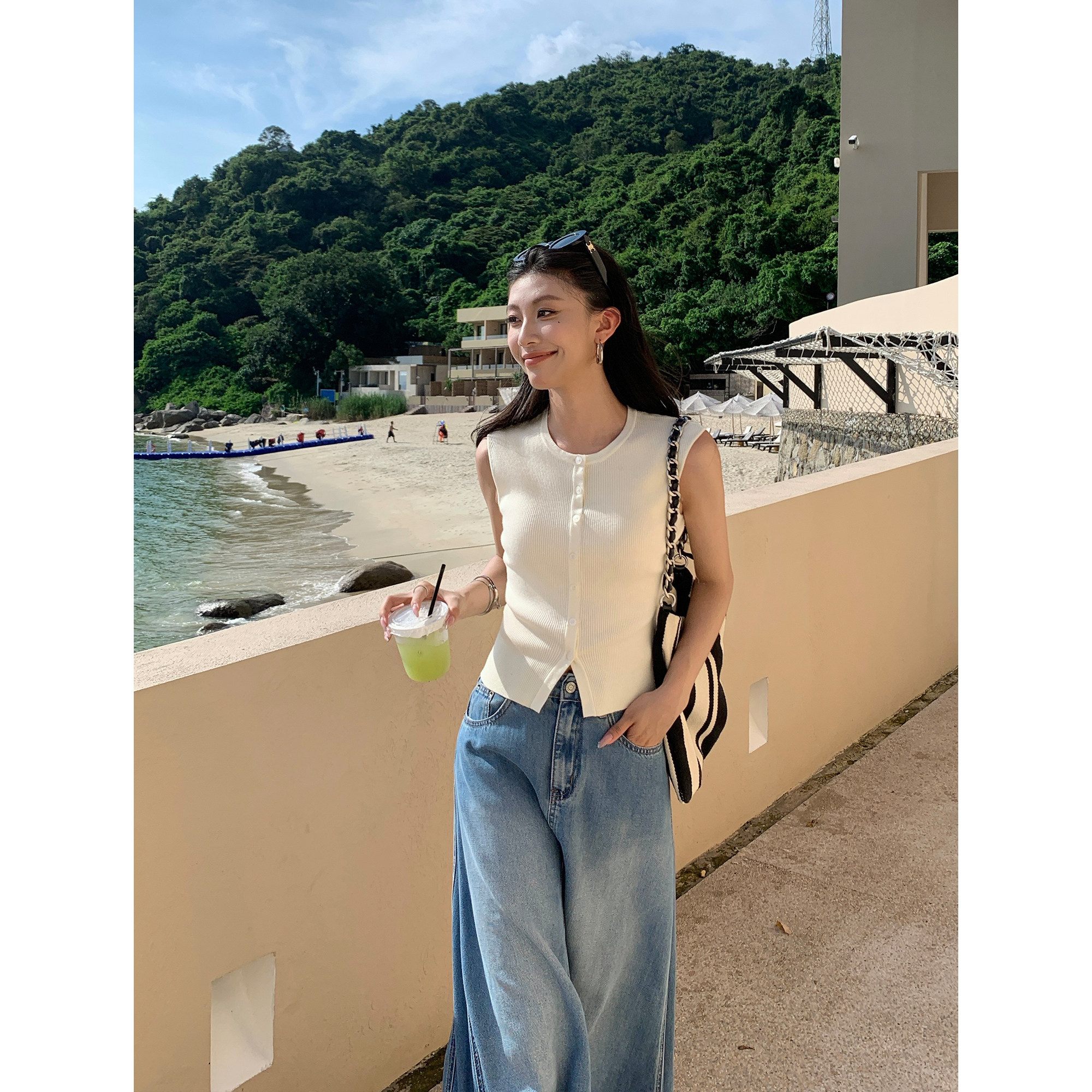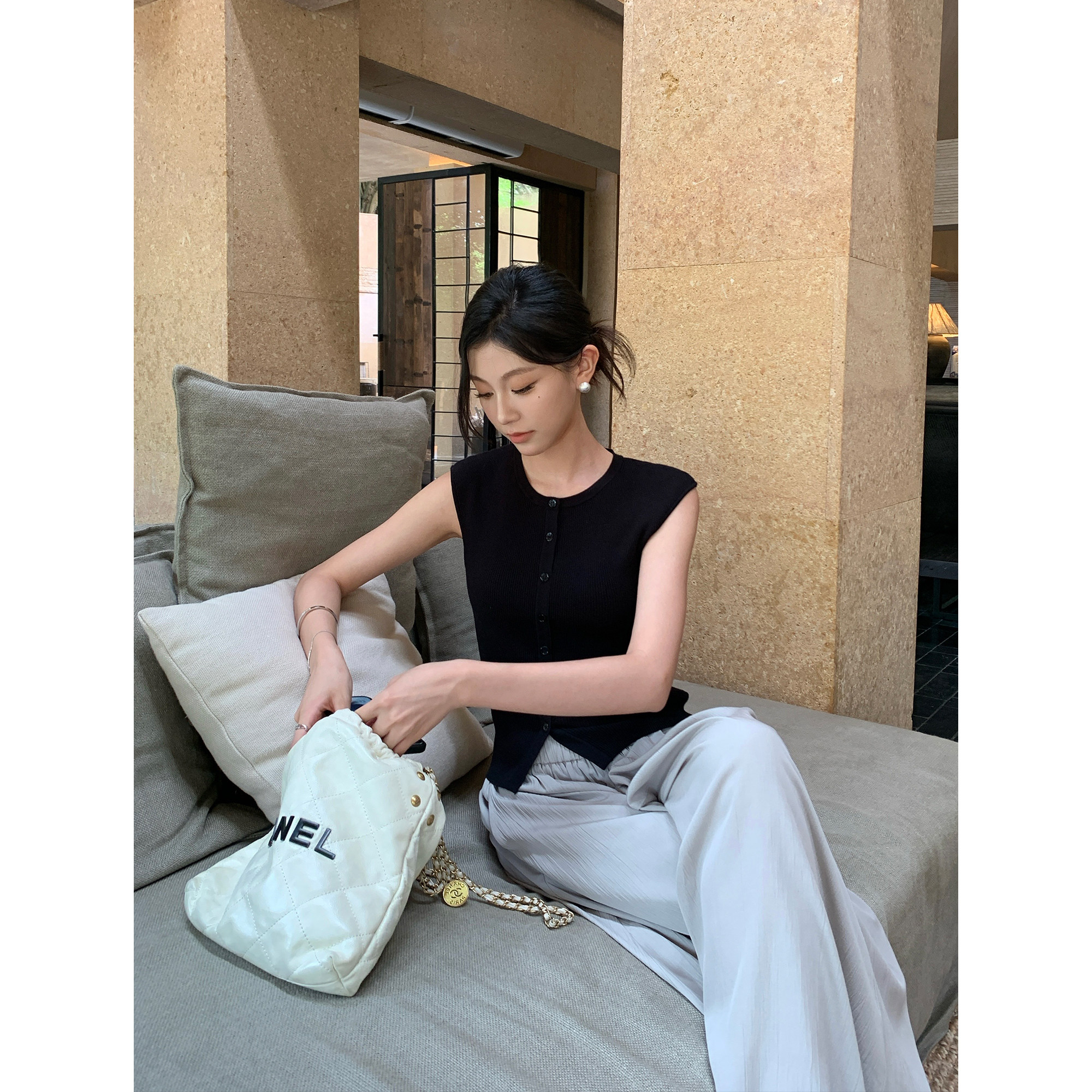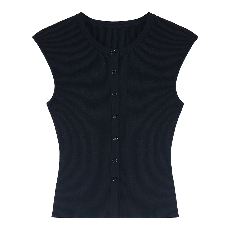 圆领针织衫 气质无袖 短袖 休闲短款 上衣 T恤女修身 pusumede简单序曲
