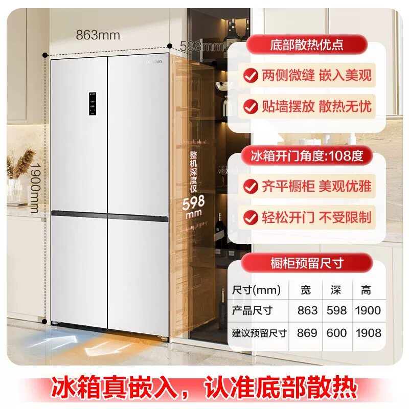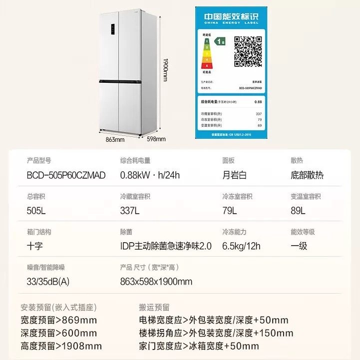 容声BCD 505P60CZMAD方糖双系统十字对开门家用嵌入冰箱等级机