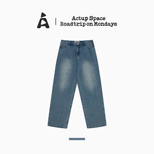 潮牌直筒裤 吕小虎ACTUP 宽松休闲长裤 男秋季 子 复古水洗马骝牛仔裤