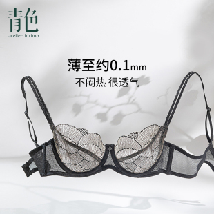 性感超薄款 青色法式 蕾丝内衣大胸显小防下垂收副乳文胸 涟漪