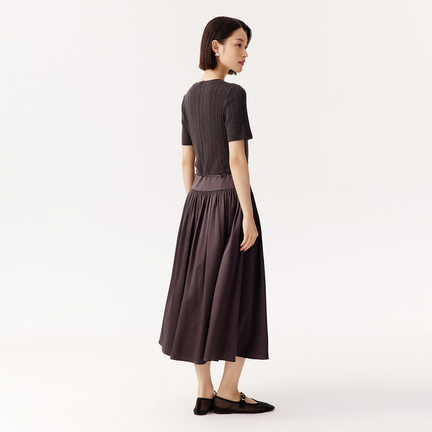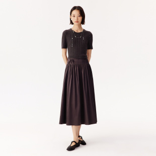 VGRASS秋冬新款 针梭镶拼假两件优雅气质收腰显瘦A字型连衣裙长裙
