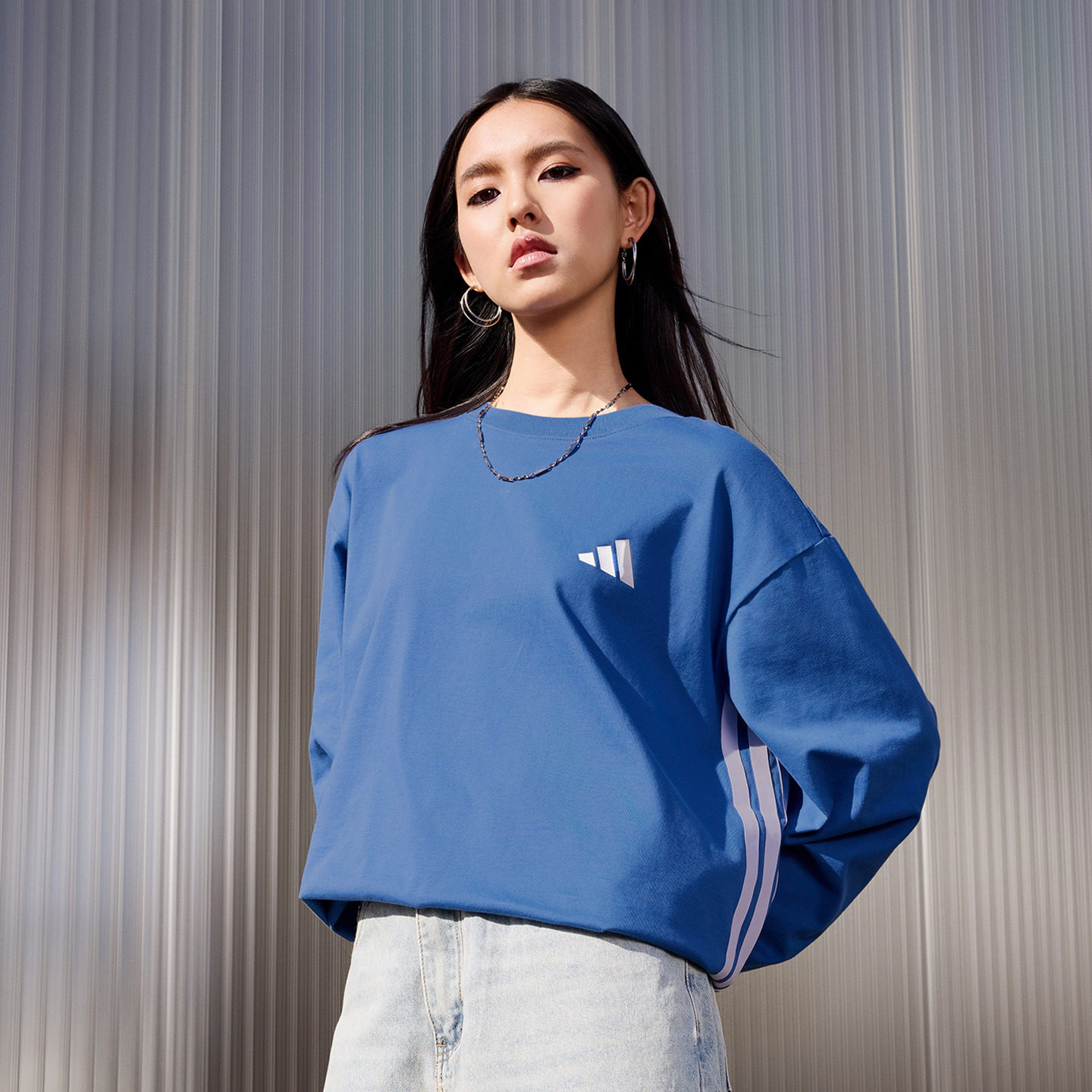 三条纹休闲简约宽松长袖 T恤男女adidas阿迪达斯官方轻运动