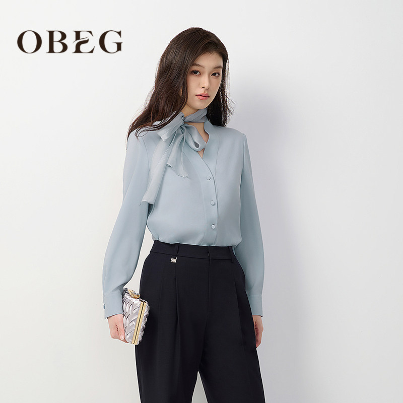 OBEG欧碧倩法式 50503502 雾蓝飘带衬衫