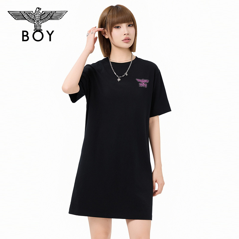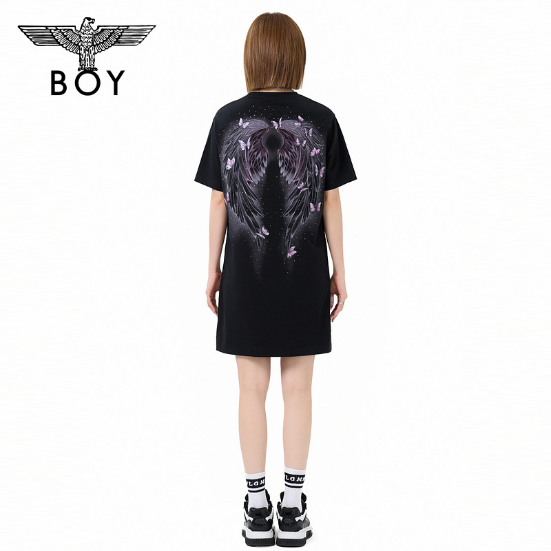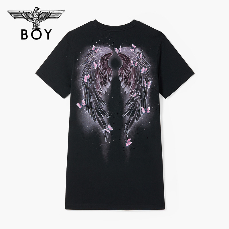 连衣裙W17019 女款 BOYLONDON蝴蝶大翅膀黑色圆领时尚 休闲潮牌T恤式