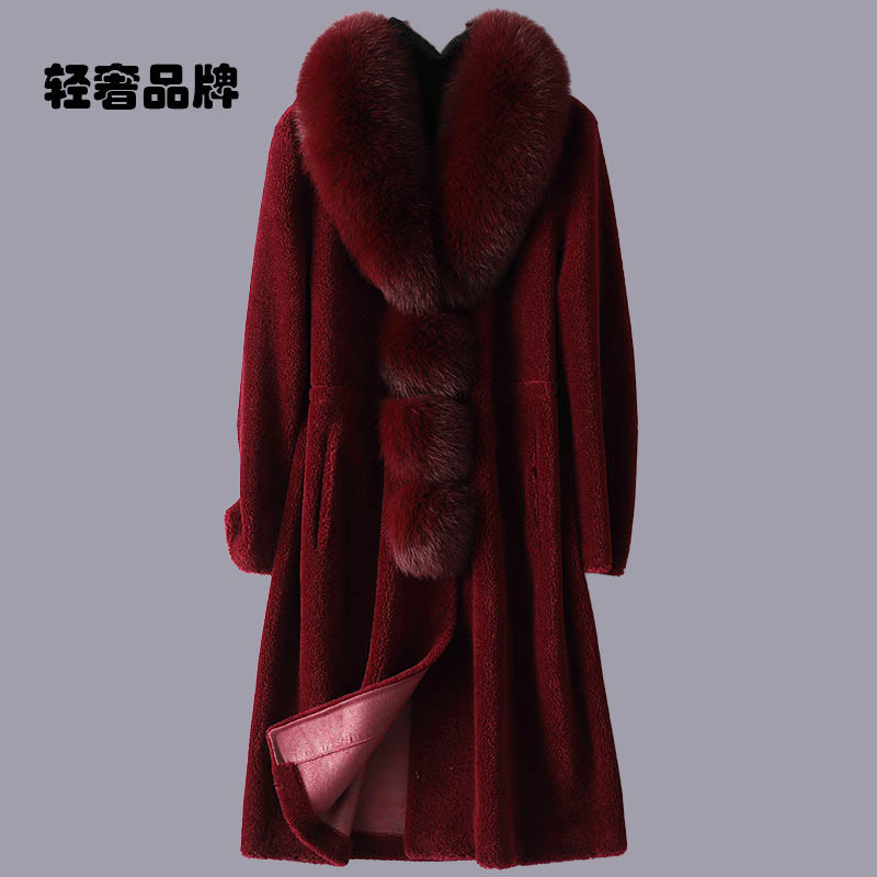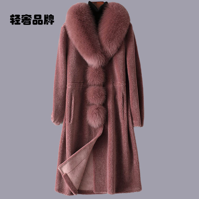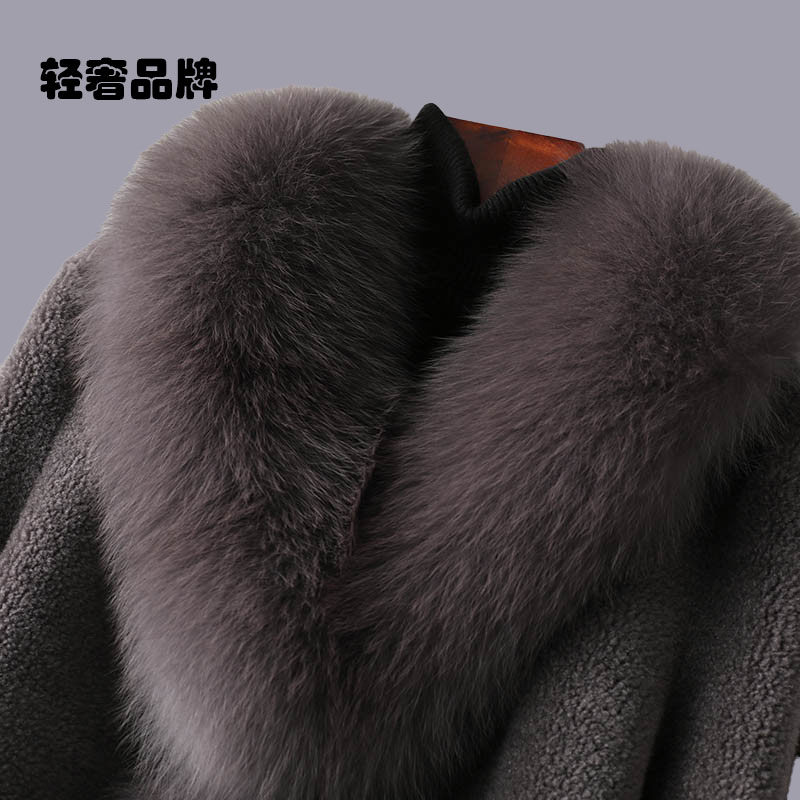 朗姿约定羊剪绒大衣女新款 2026冬显瘦狐狸毛领羊羔毛颗粒皮草外套