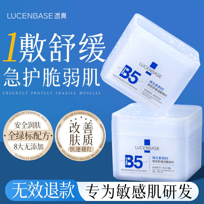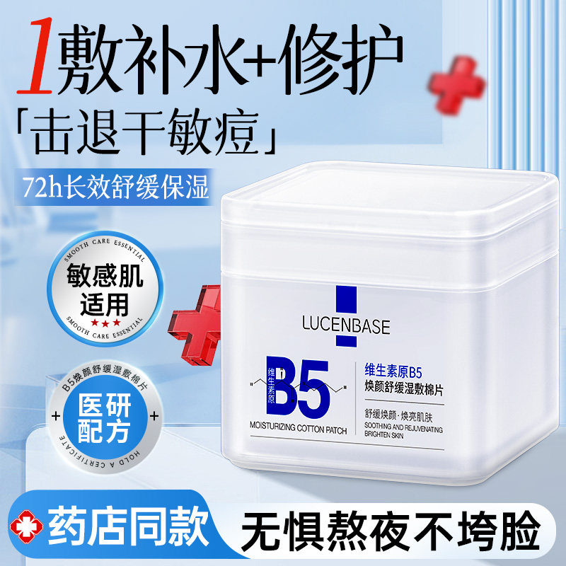 晒后修复祛痘去黄提亮敏感肌官方正品 B5湿敷棉片罐装 妆前补水保湿