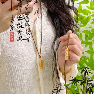CaldiceKris品牌 轻奢项链 爆闪碎碎冰四方来财金色实心吊坠女时尚