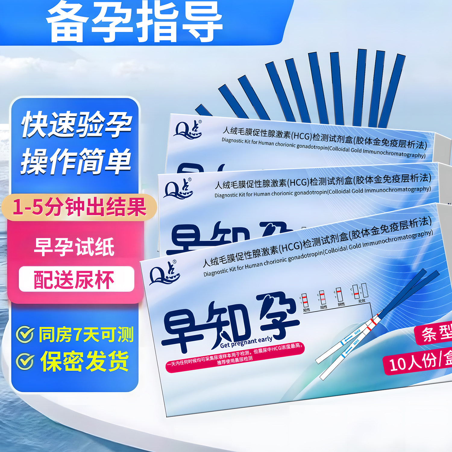 Q点早孕测试早早孕试纸怀孕检测一次性验孕棒验孕检测试剂盒