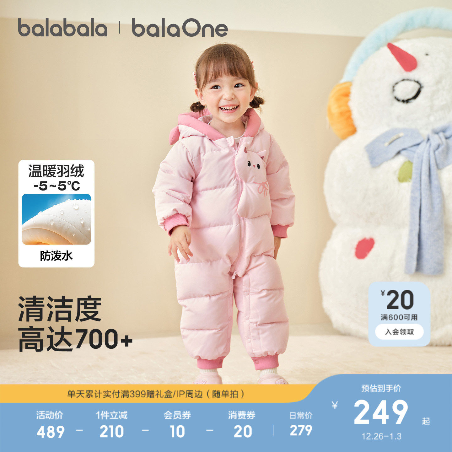 哈衣爬服萌趣 宝宝衣服冬装 巴拉巴拉童装 婴儿羽绒服连体衣2025新款