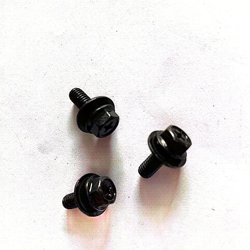 十字带垫组合螺丝环保锌防绣螺 电动车上用六角法兰 m6x16 镀黑锌