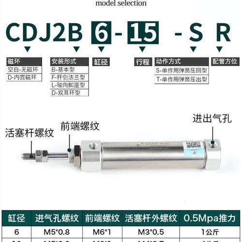 气动小型不锈钢迷你气缸微针笔型纺织机CDJ2B10