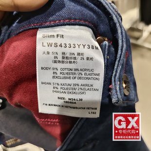 LWS4333YY38M 中腰窄脚深蓝小脚女水洗做旧牛仔裤 正品 Lee433修身