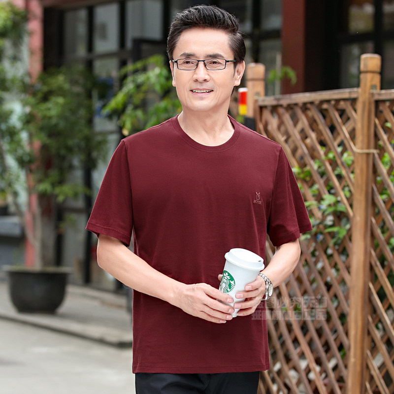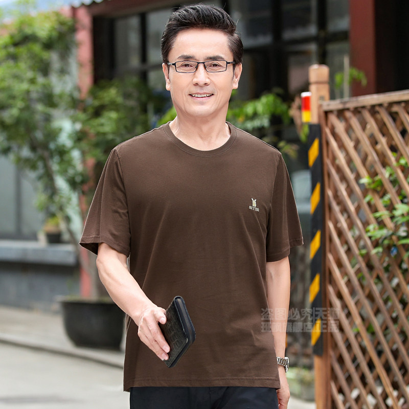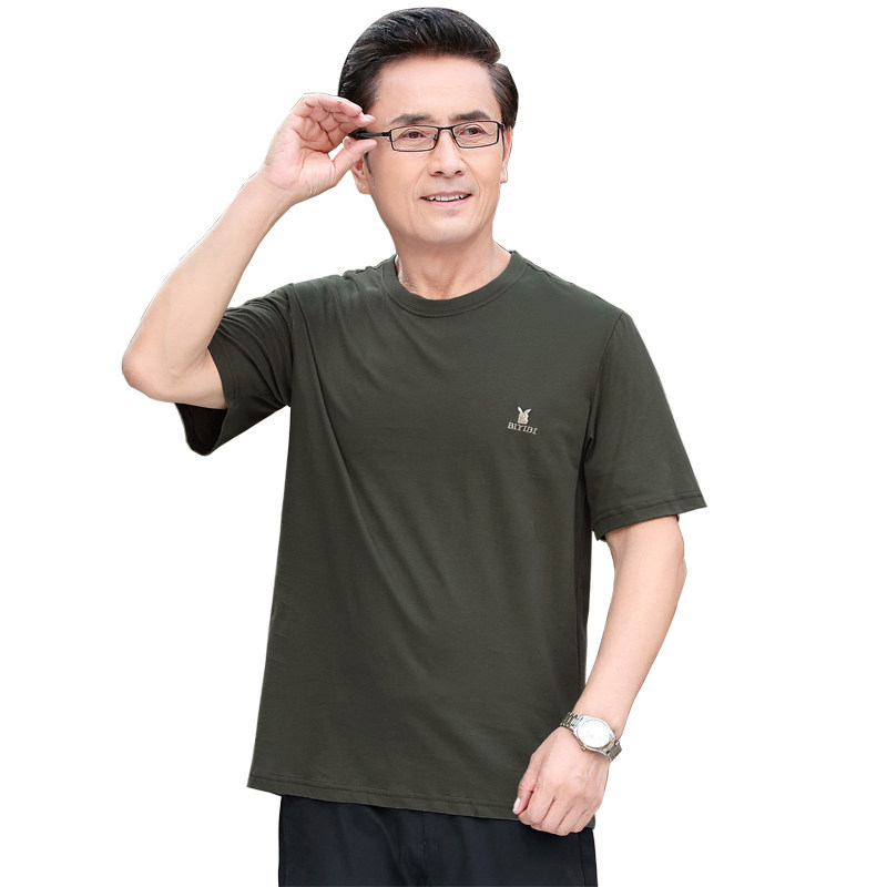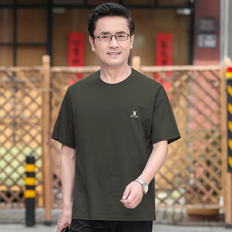 爷爷夏季 2021爸爸装 t恤圆领纯棉宽松中年人男装 中老q年男短袖 夏装