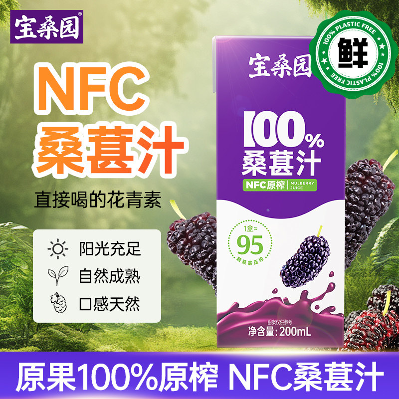 宝桑园100%NFC桑葚汁200ml 6盒健康无添加纯果蔬汁体验装