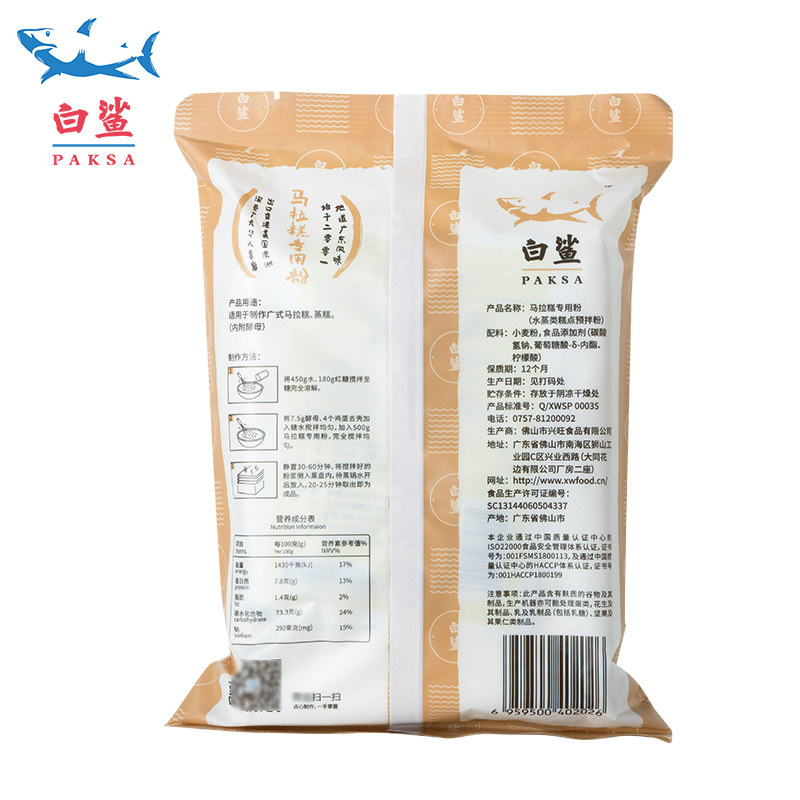 低筋小麦面粉500g 白鲨 电饭煲蛋糕自发粉 马拉糕专用粉 5包 广式