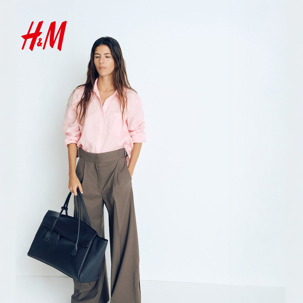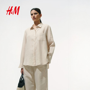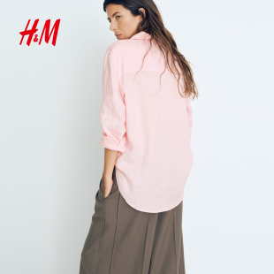 透气慵懒松驰感极简上衣亚麻衬衫 春季 有领上衣1219107 衬衫 HM女装