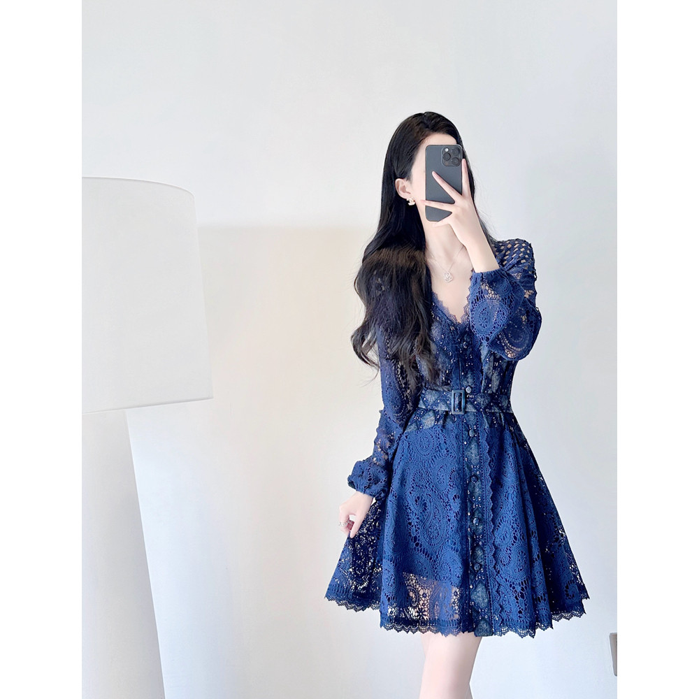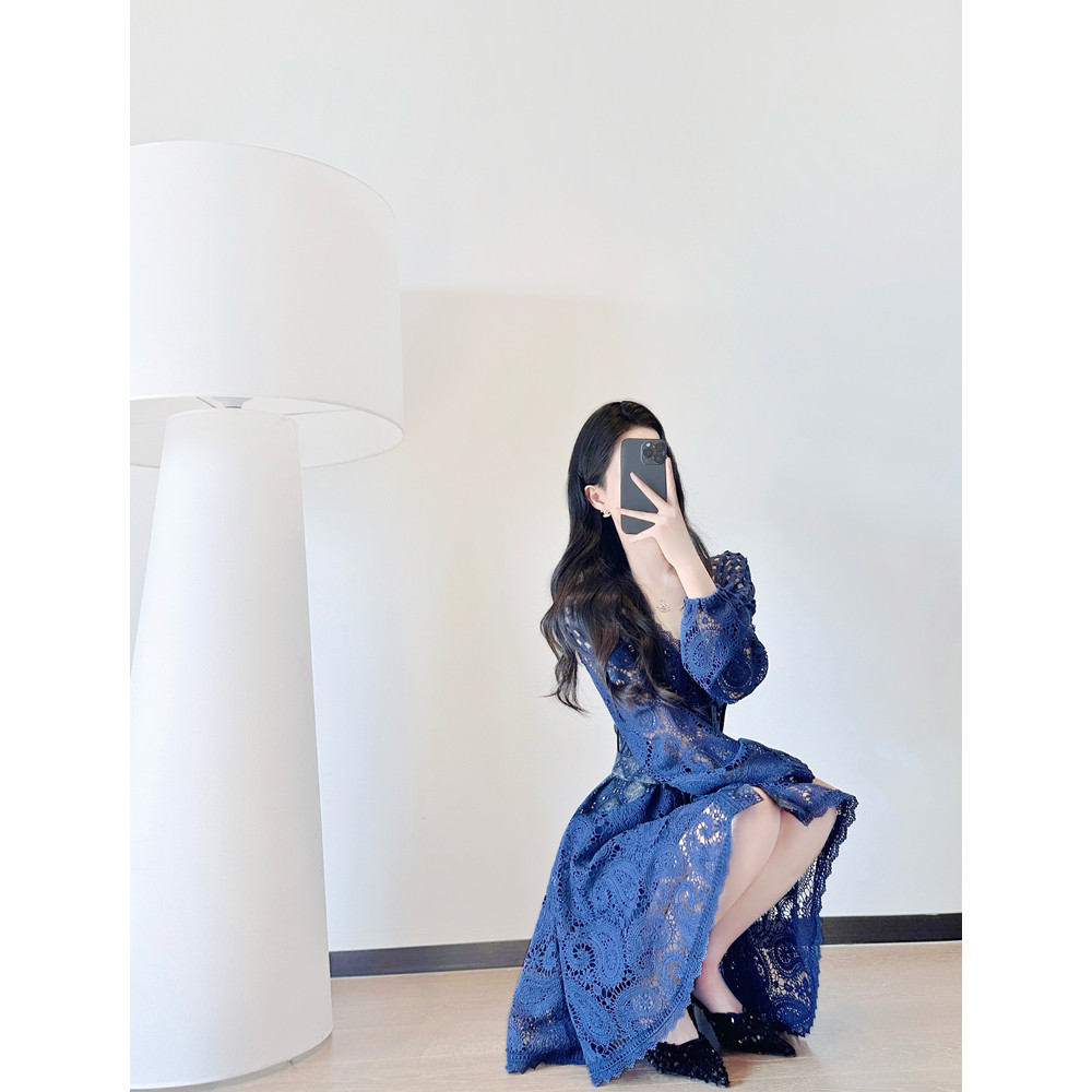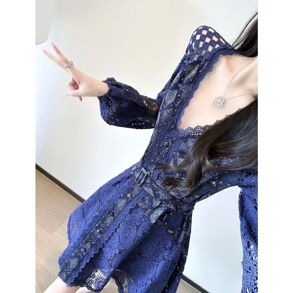 蕾丝连衣裙女轻奢高级感2025春季 气质名媛御姐收腰显瘦a字裙 新款