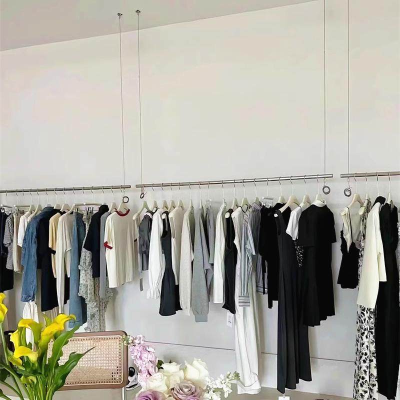 服装 挂衣杆橱窗陈列货架 店不锈钢吊架吊顶悬挂展示架侧挂简约女装