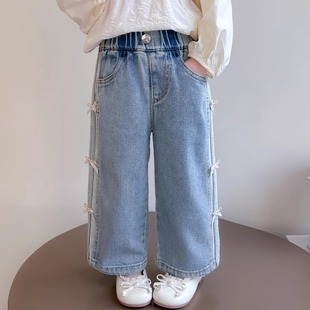 美式 直筒加绒裤 蝴蝶贴布阔腿休闲裤 胖mm显瘦卫裤 子 女秋冬新款 大码