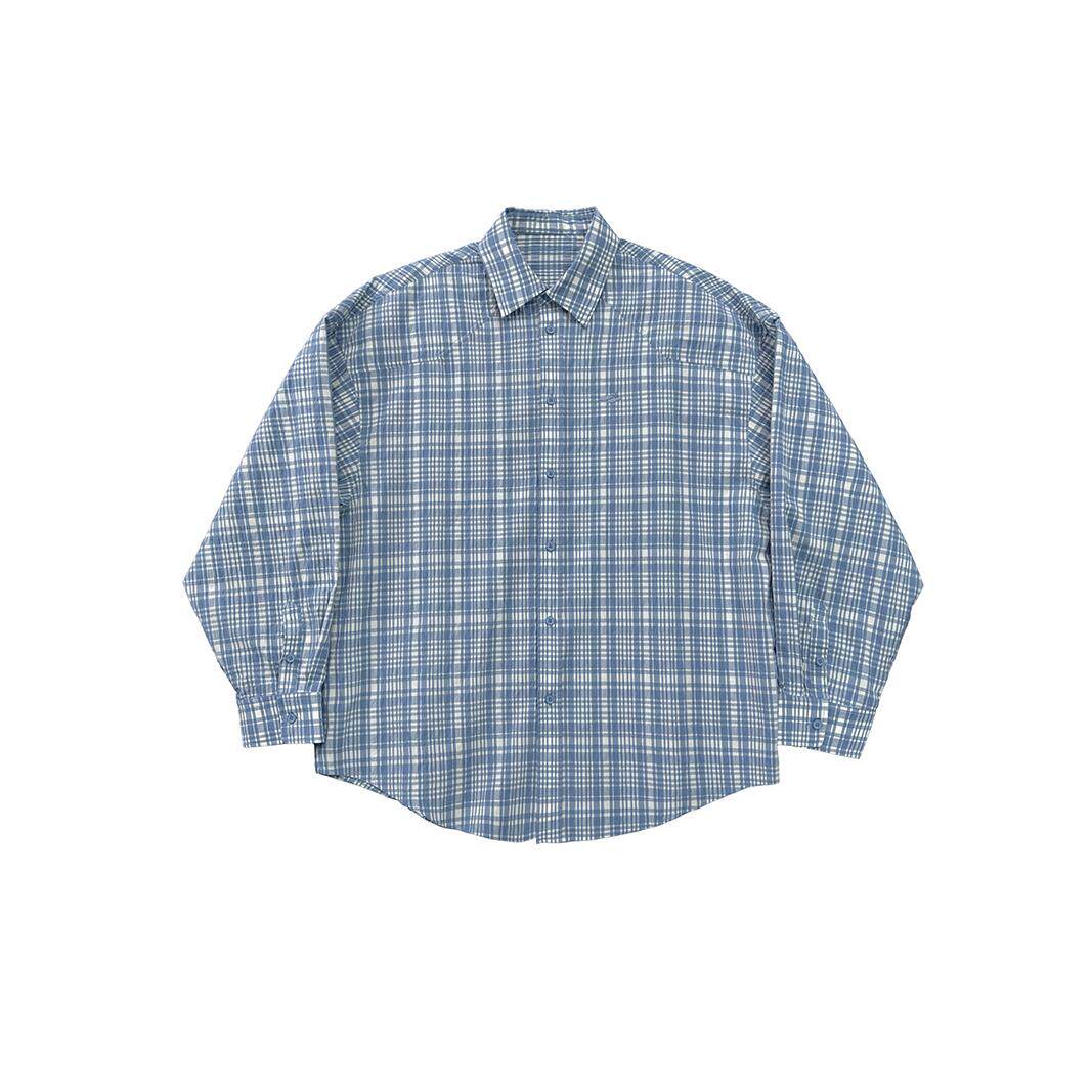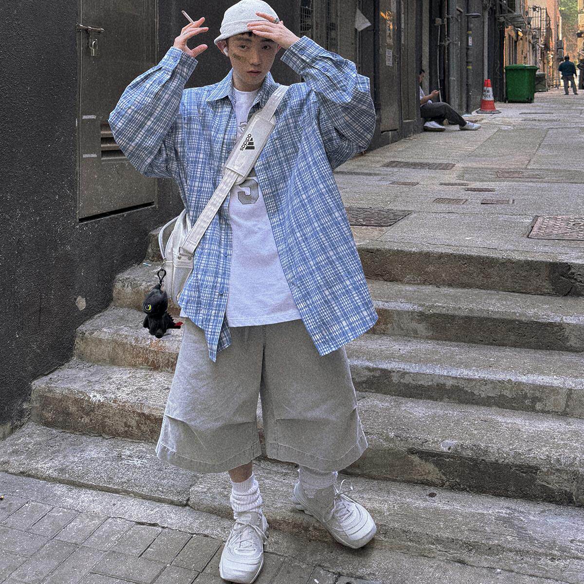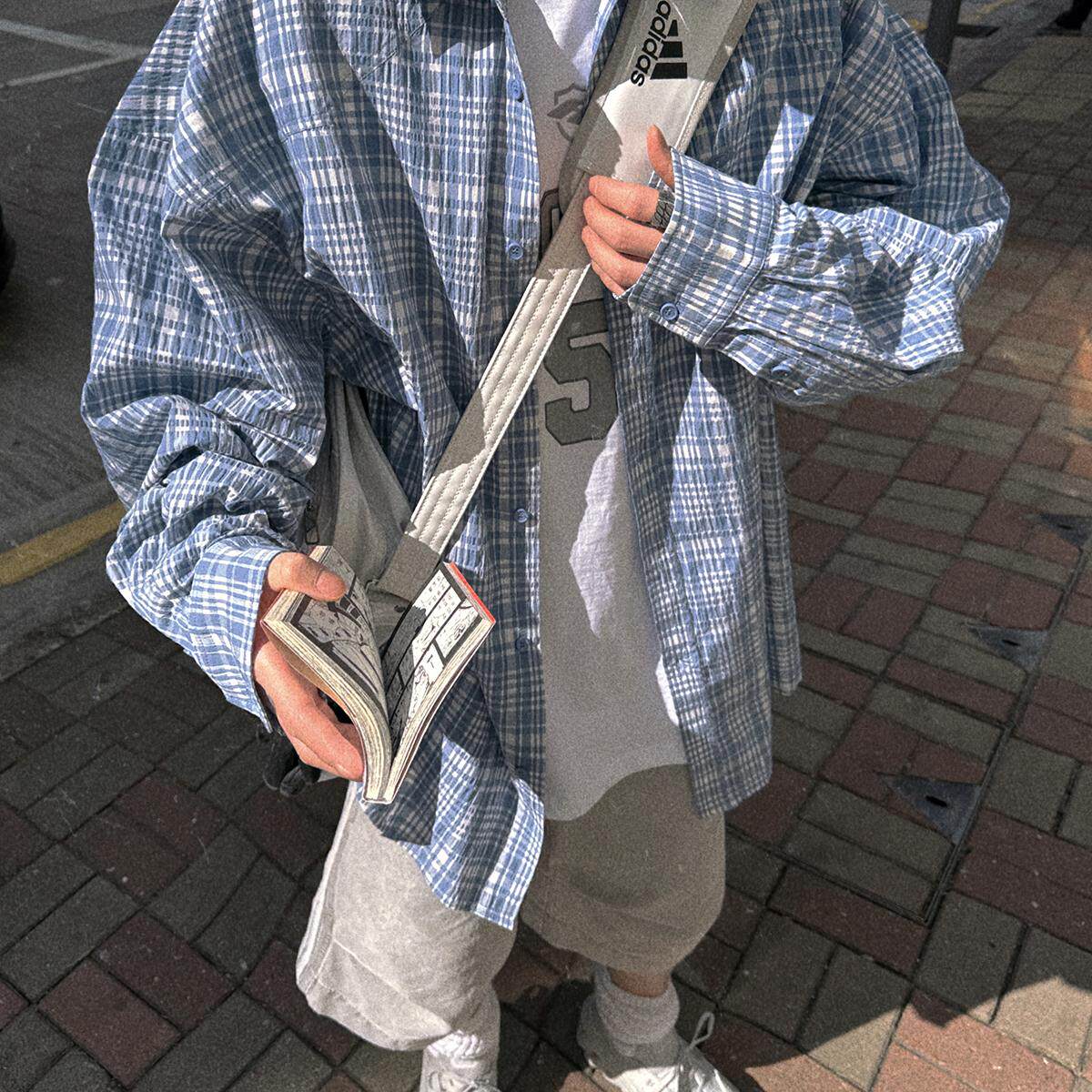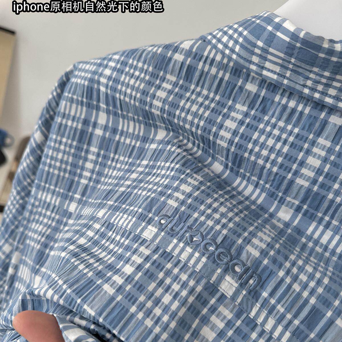 格纹衬衣 肌理感奶蓝色宽松大版 Aurocean 宽肩廓形格子衬衫