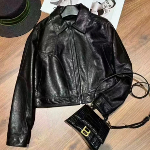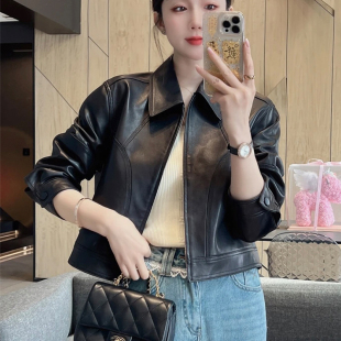 高级感修身 2026春新款 显瘦皮夹克 100%真皮绵羊皮衣外套女短款 韩版