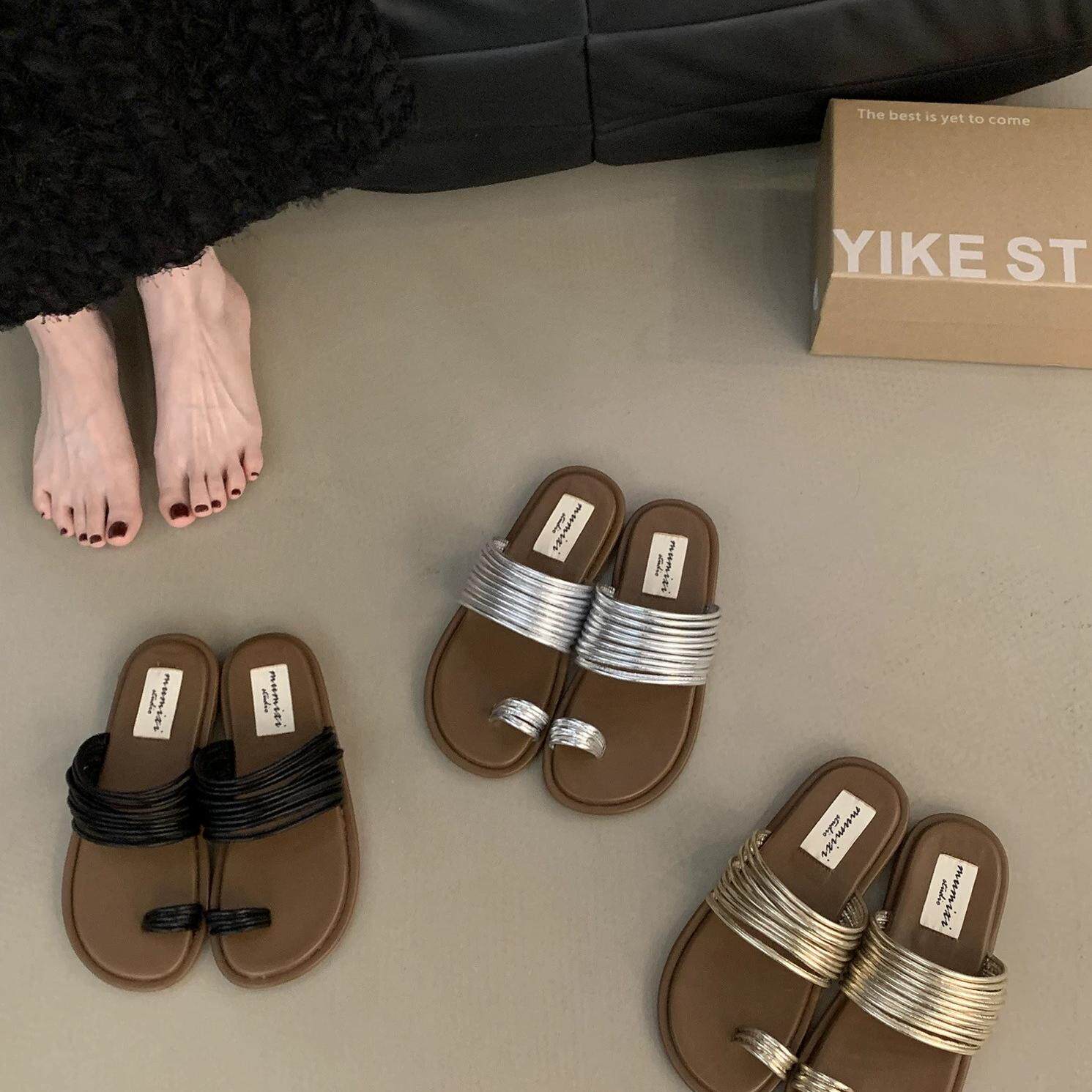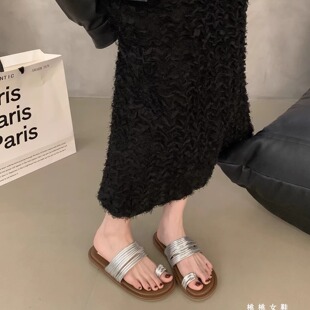 一字沙滩罗马凉鞋 平底凉拖鞋 女夏外穿2026小众设计感细带套趾拖鞋