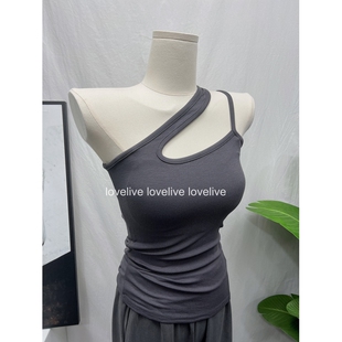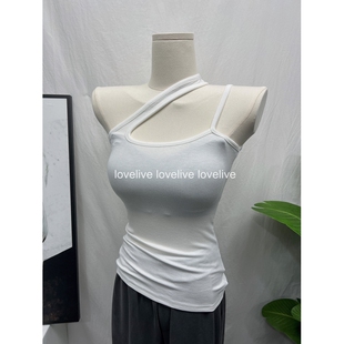 显身材背心短款 性感斜肩吊带修身 露背打底上衣女 凹造型Bi备 自留