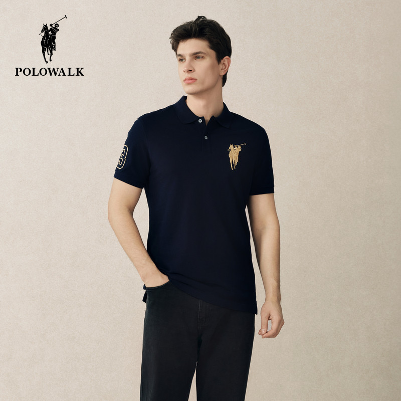 纯棉 夏新品 POLOWALK短袖 男式 百搭净色大马标T恤 POLO衫
