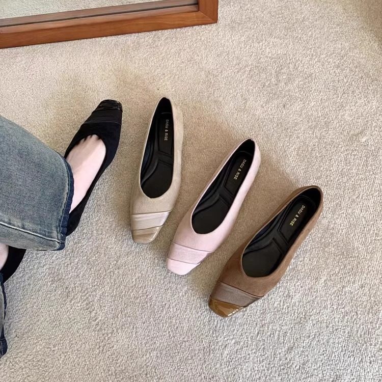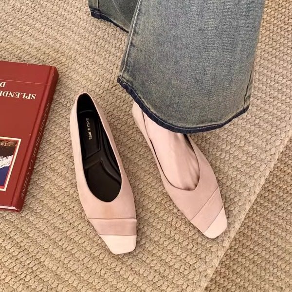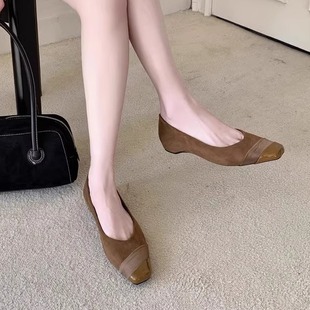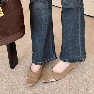 女2026春夏新款 绒面方头工作鞋 韩版 一脚蹬通勤鞋 奶奶鞋 内增高单鞋