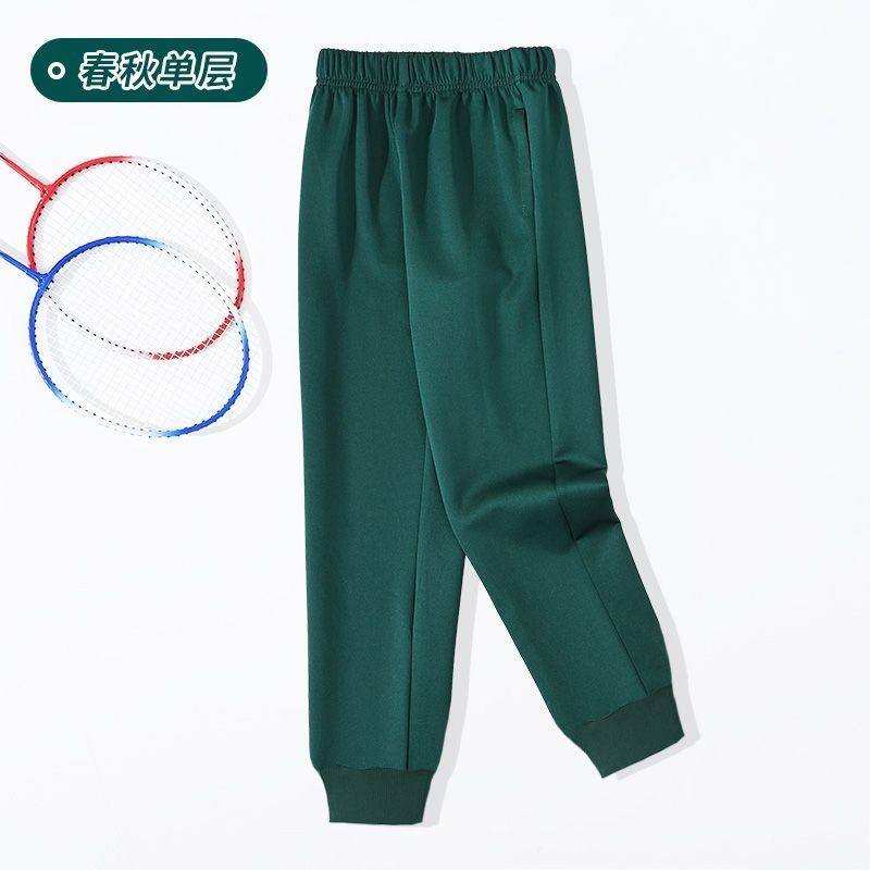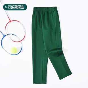 短裤 宽松直筒春夏季 子初高中小学生休闲运动裤 绿色纯色束脚校服裤