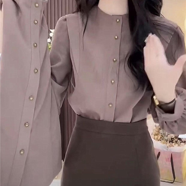 高品质气质简约复古港风设计感衬衫 孕衬衣百搭上衣 女秋冬内搭长袖