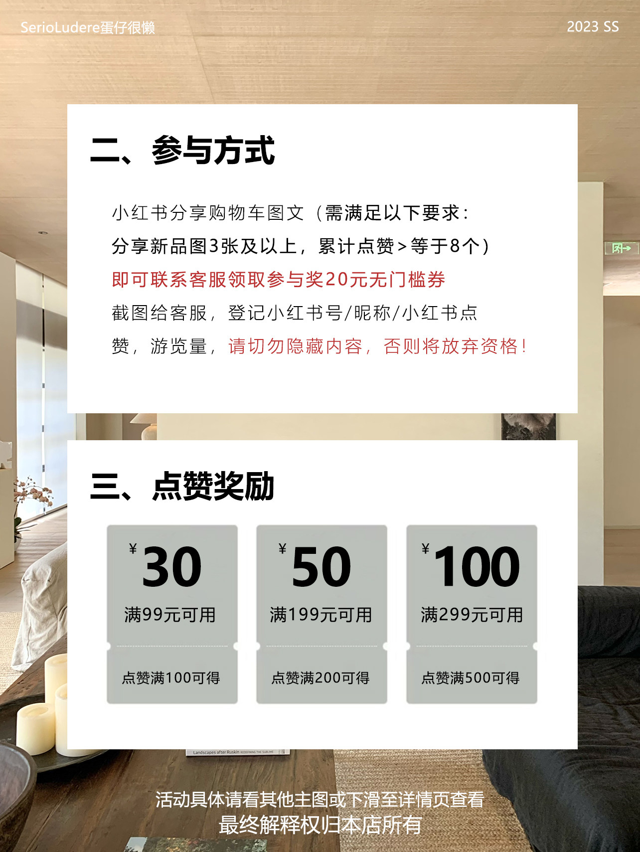 分享点赞领专属大额券 15上新 SerioLudere蛋仔很懒