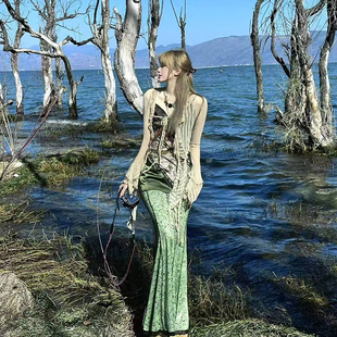 宴会性感吊带晚礼服桑拿足浴K歌技师工作服气质显瘦开叉连衣裙