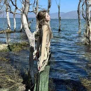内搭V领连衣裙女秋冬流苏外搭斗篷披肩两件套 气质长袖 张小涵 法式