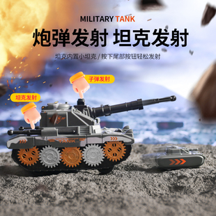 儿童弹射坦克车可发射炮弹装 甲军事模型多功能惯性男孩玩具小汽车