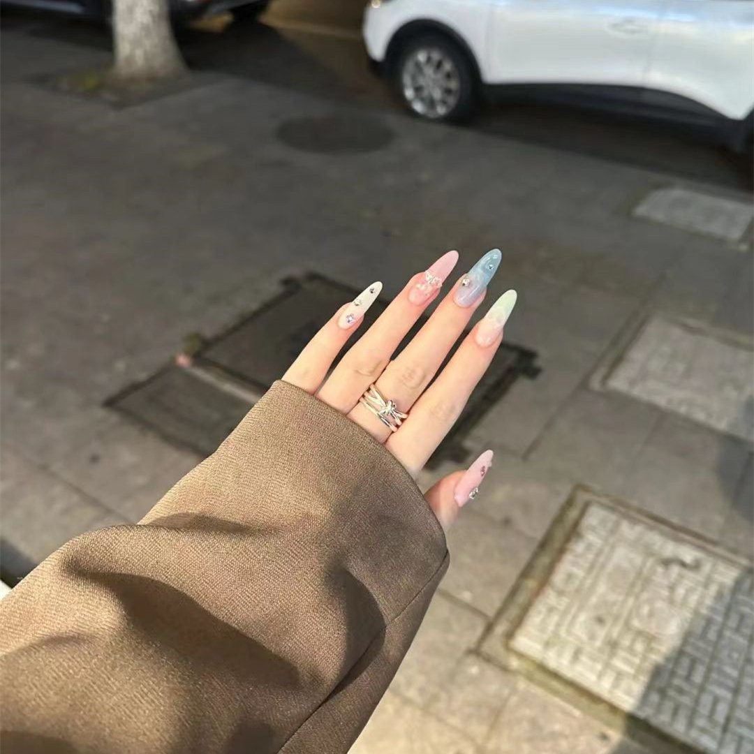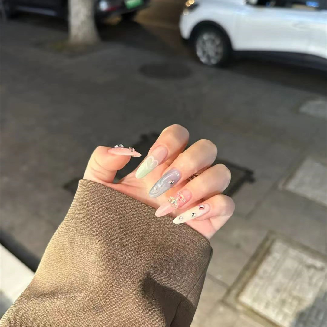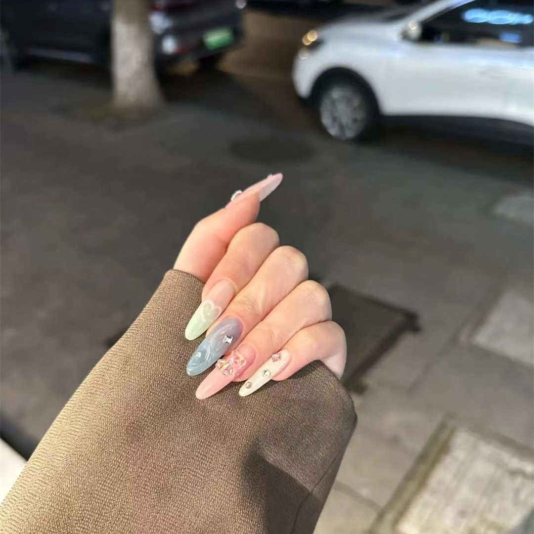 213穿戴假指甲贴片手工定制成品美甲长款 甜酷彩色手工美甲孕妇带