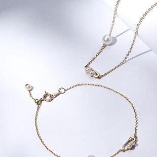 Annaya别针项链9K彩金天然淡水珍珠黄金锁骨链颈链节日礼物送女友