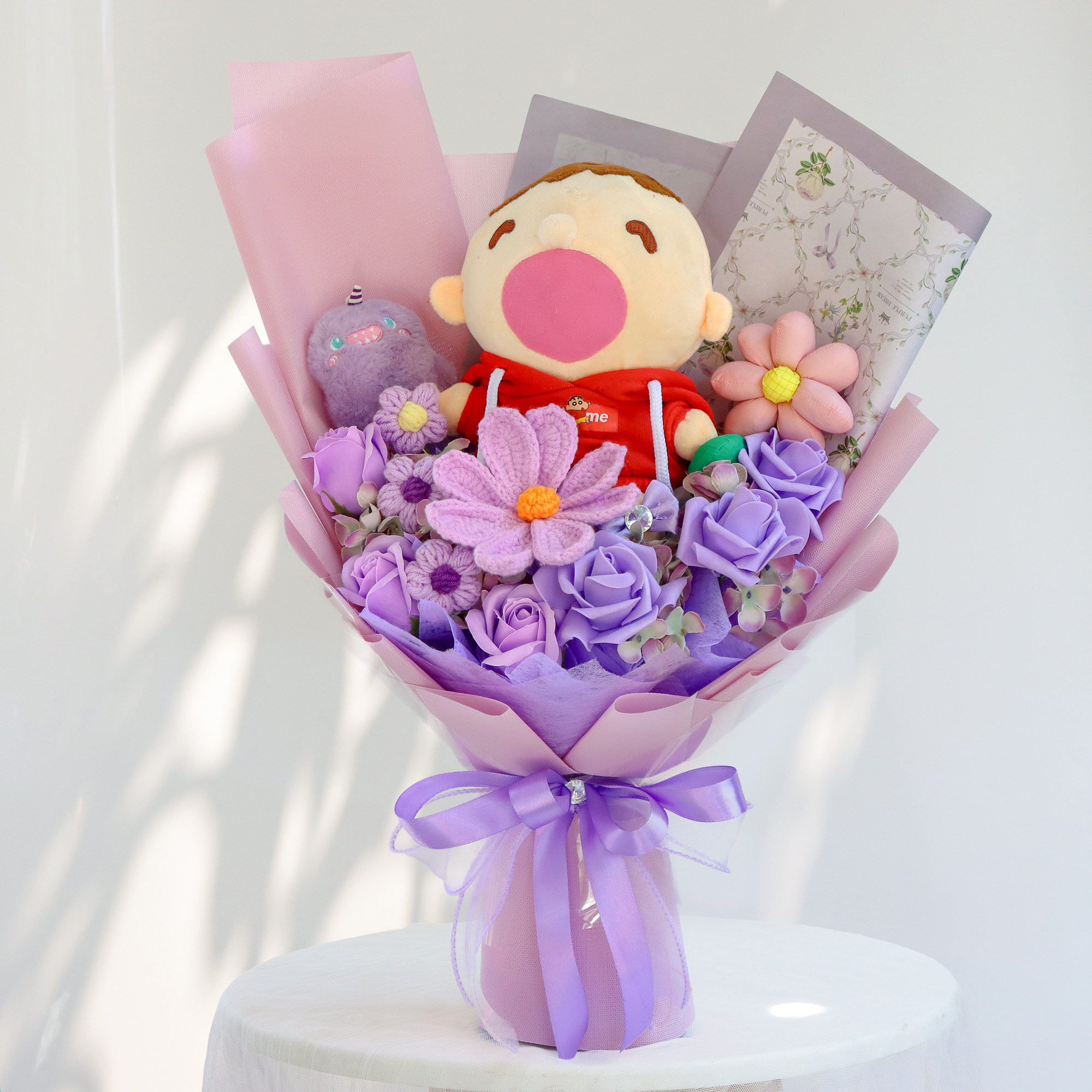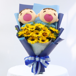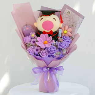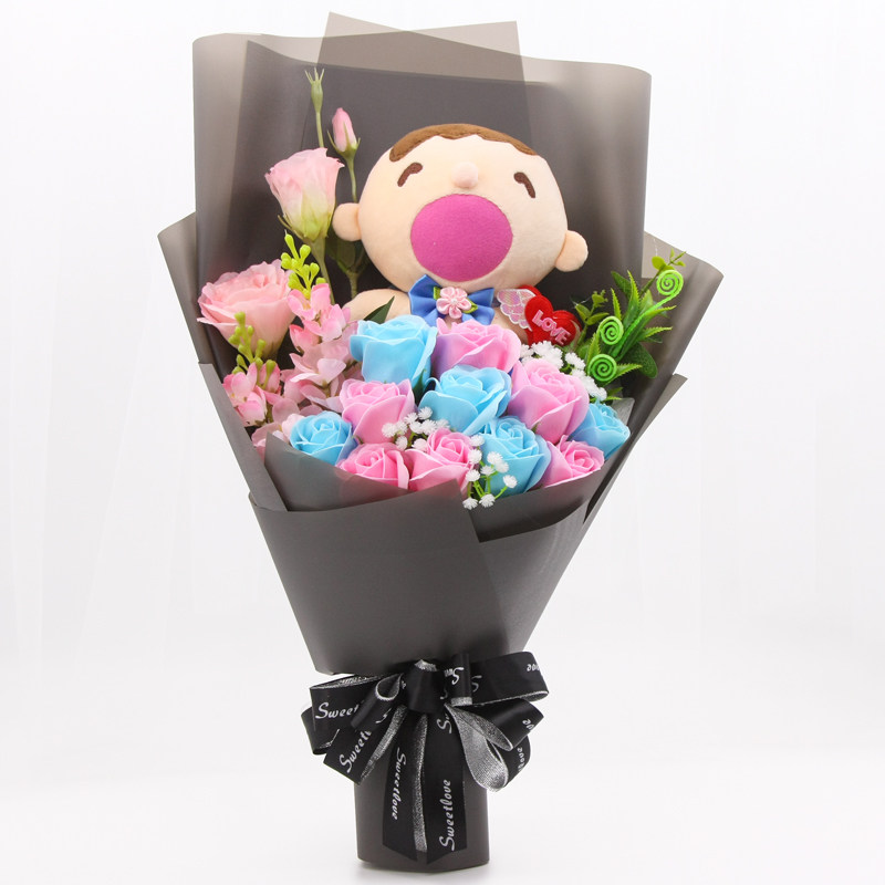 卡通香皂玫瑰花大口公仔花束娃娃毛绒玩偶花创意生日礼物送女朋友