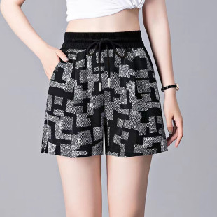 热裤 冰丝短裤 五分裤 高腰显瘦阔腿休闲运动短裤 女夏印花宽松大码
