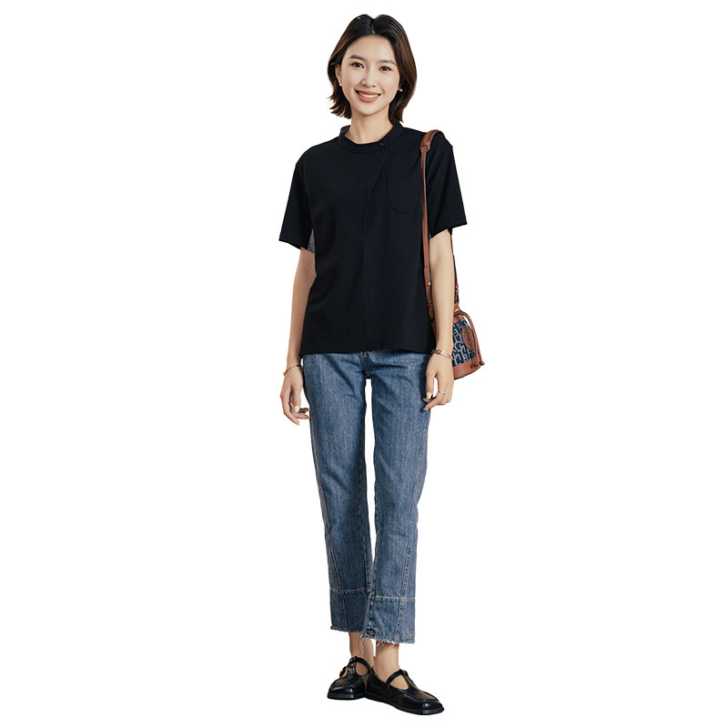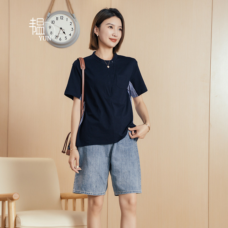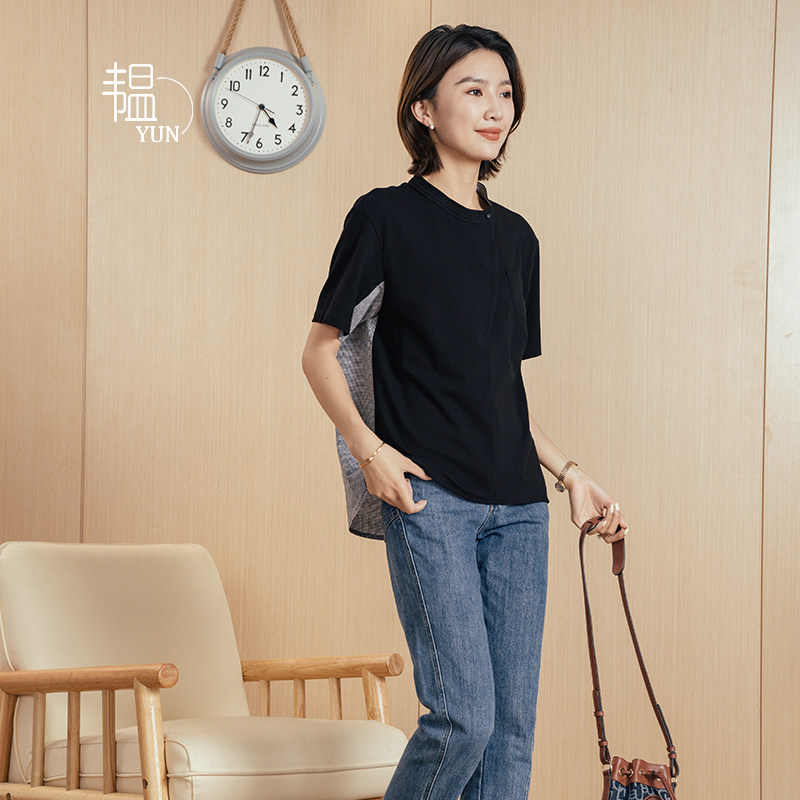 YUN 设计感圆领套头斜门襟后背拼接短袖 韫2025夏季 女装 T恤 新款